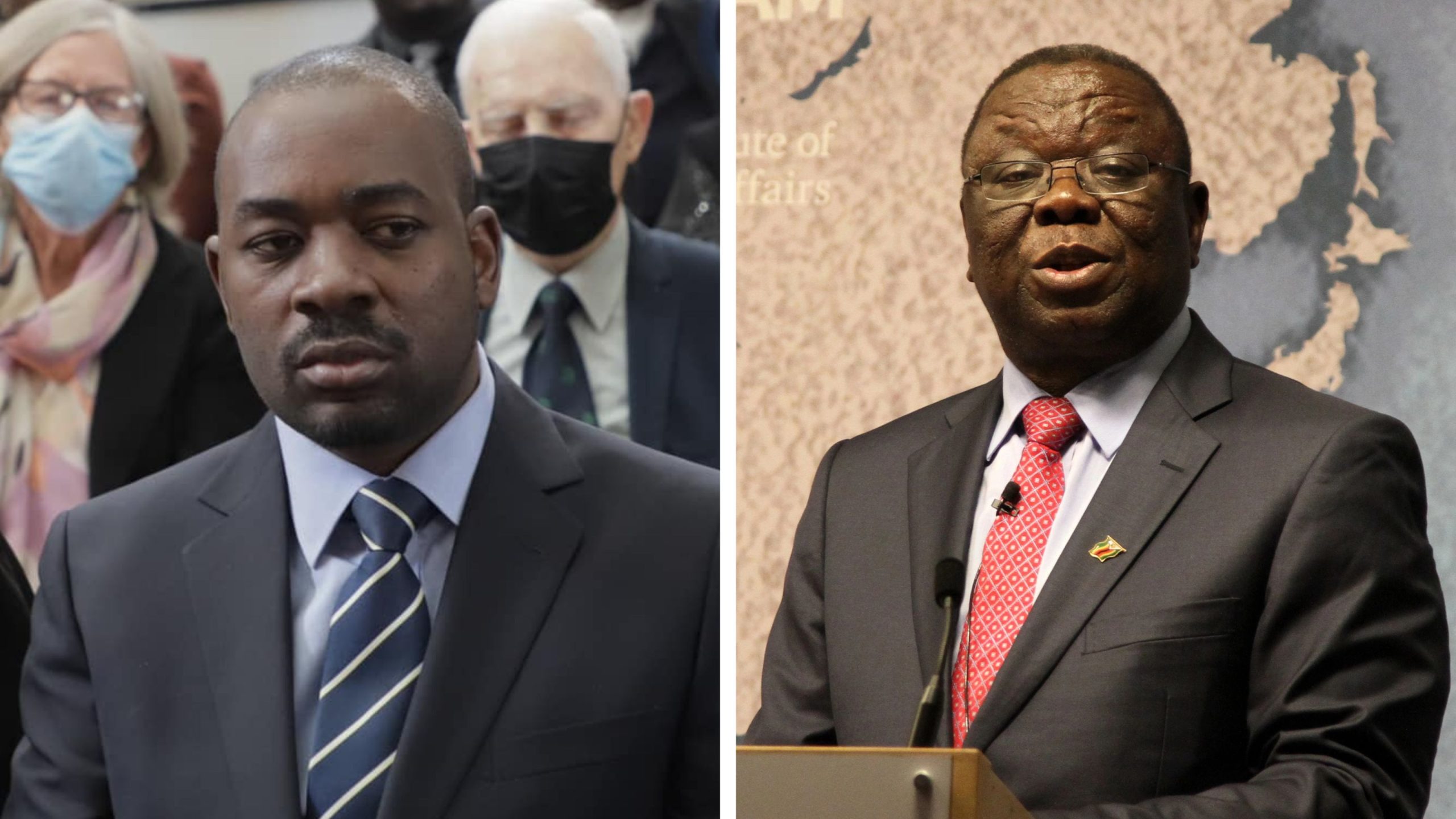 Zimbabwe opposition leader Nelson Chamisa and his predecessor Morgan Tsvangirai (Pictures via Facebook – Nelson Chamisa and Dominic Dudley via DepositPhotos.com)